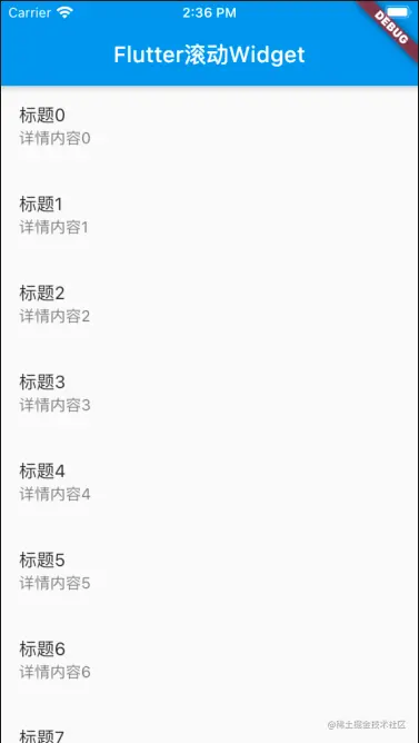 return ListTile(title: Text("标题$index"), subtitle: Text("详情内容$index"));