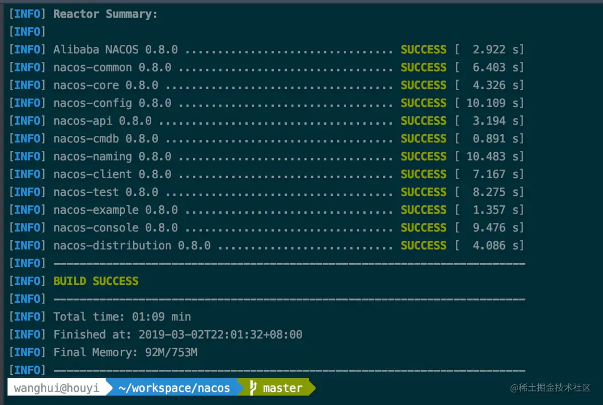 两种方法可以获得 Nacos 的可执行程序,下面我用第一种方式通过源码编译一个可执行程序,可能有人会问为啥不直接下载 Release 包,还要自己去编译呢?首先 Release 包也是通过源码编译得到的,其次我们通过自己编译可以了解一些过程也有可能会碰到一些问题,这些都是很重要的经验,好了那我们直接源码编译吧。