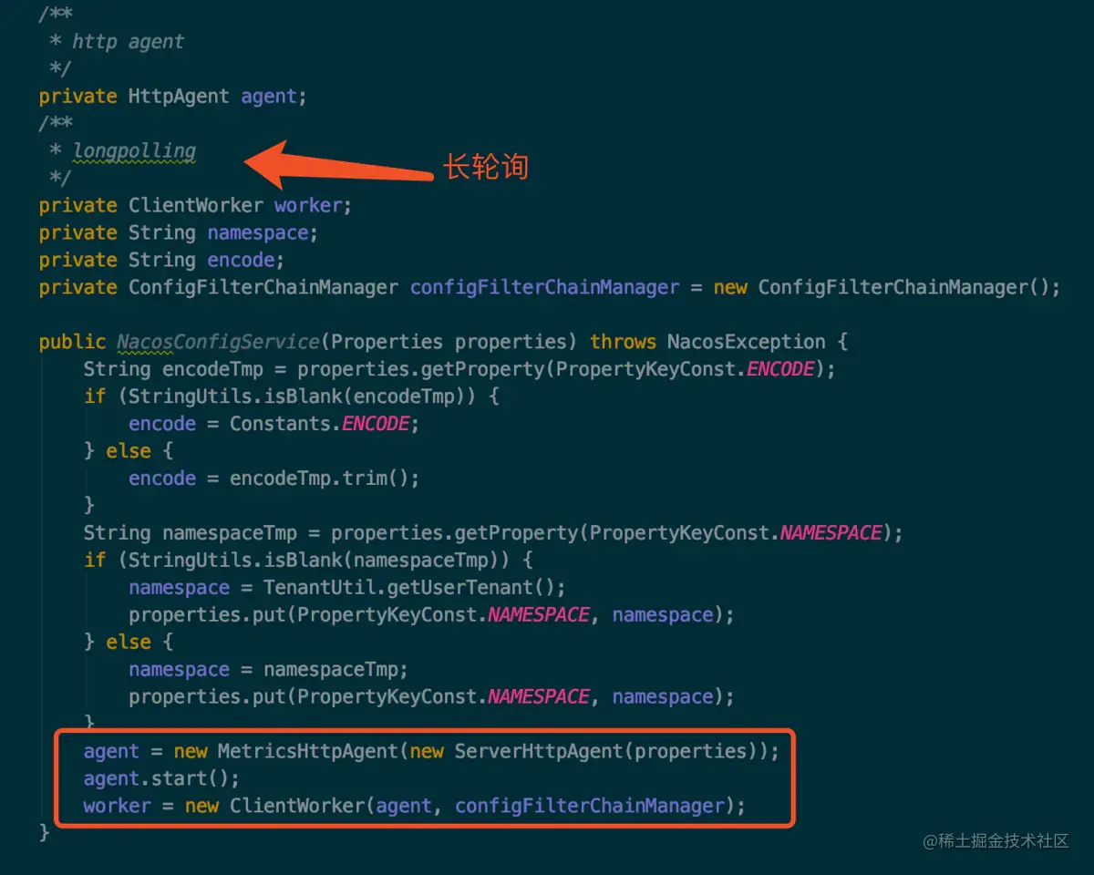 现在我们来看下 NacosConfigService 的构造方法,看看 ConfigService 是怎么实例化的,如下图所示: