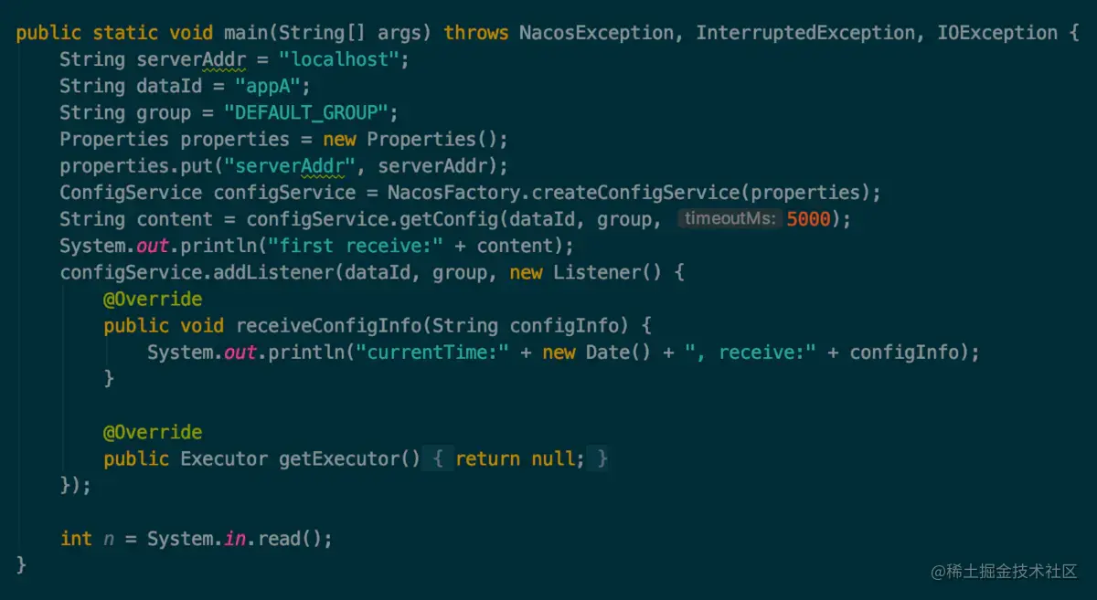 那到底是推还是拉呢,从 Nacos 客户端通过 Listener 来接收最新数据的这个做法来看,感觉像是服务端推的数据,但是不能想当然,要想知道答案,最快最准确的方法就是从源码中去寻找。