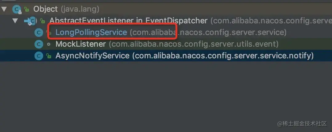 可以看到 AbstractEventListener 所有的子类中,有一个我们熟悉的身影,他就是我们刚刚一直在研究的 LongPollingService。