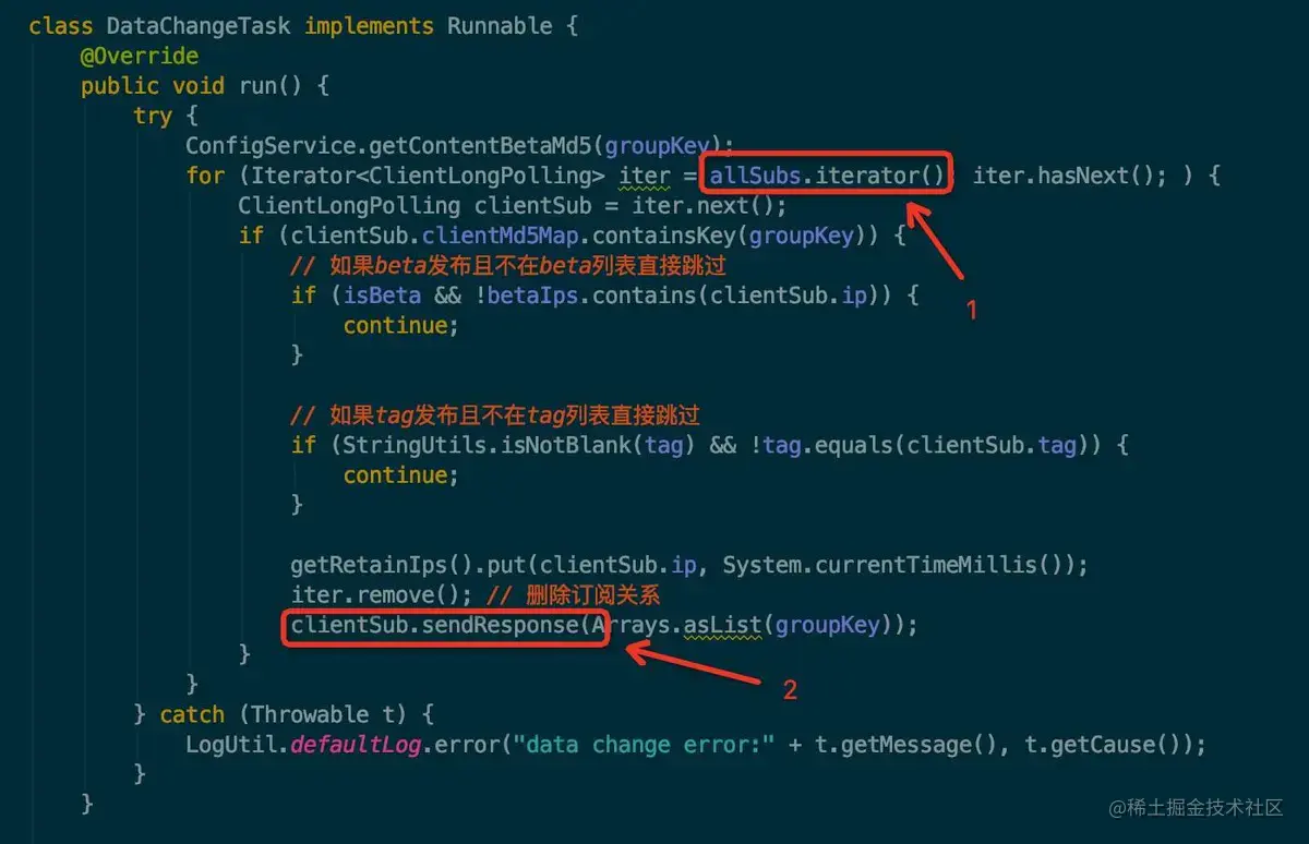 对于客户端来说,只要拿到 changedGroupKeys 即可,后续的操作我在上一篇文章中已经分析过了。