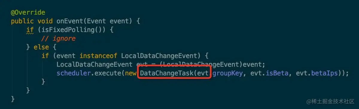 所以到这里我们就知道了,当我们从 dashboard 中更新了配置项之后,实际会调用到 LongPollingService 的 onEvent 方法。