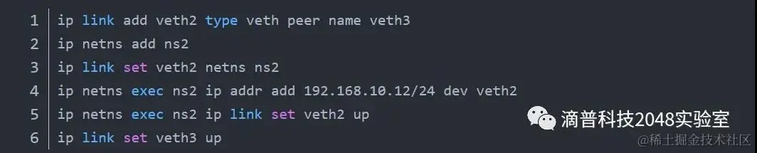 直接上命令,跟上面的差不多,也是建一对veth网卡,一端转到新的ns上,在这就不一句句解释了: