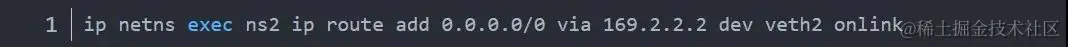 简单解释一下为什么给ns2设置的默认网关是169.2.2.2,其实默认网关的IP在整个通信的过程中都不会用到,想一下数据包发送流程,当ns2的要发一个包去主机时,封完IP头后,到了链路层,协议栈的路由判决已经决定了下一跳为默认网关,这时候邻居子系统会从ns1的邻居表(也就是ARP表)查找下一跳IP的MAC地址,找不到就会发送ARP请求,这时候ARP请求到了对端veth3,因为veth3开启了arp代答,所以会直接把自己的MAC地址返回去,这样ns2的邻居子系统会以为自己得到了网关的MAC地址,于是完成MAC头的封装,把数据包发送到veth1,所以其实在这里的默认网关的IP可以随便写一个非当前网段的地址。
