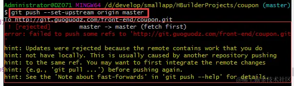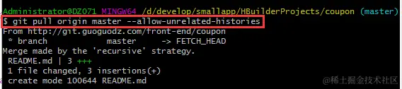 这个时候,如果执行: git pull http://git.guoguodz.com/front-end/coupon.git,会得到这样的提示: