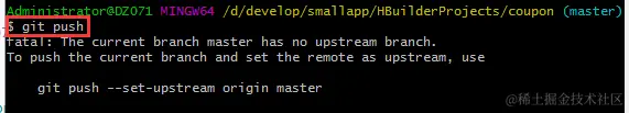 按照提示,执行:git push --set-upstream origin master,这个时候又报错: