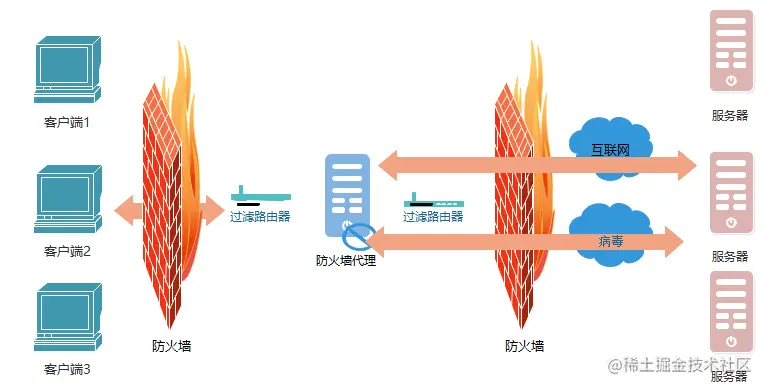防火墙代理提高安全性,代理服务器会在网络中的单一安全节点上限制哪些应用层协议的数据可以流入另一组织。还可以提供用来消除病毒的Web和E-mail代理使用的那种挂钩程序,对流量进行详细的检查。