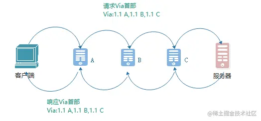 Via首部字段用于记录报文的转发,诊断报文循环,标识请求、响应链上所有发送者的协议能力。