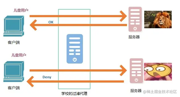 Web代理(proxy)服务器是网络的中间实体。代理位于客户端和服务端之间,扮演“中间人”的角色,在各端点之间来回传送HTTP报文。某个客户端专用的代理为私有代理,众多客户端共享的代理称为公共代理。