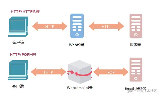 代理:连接的是两个或多个使用相同协议的应用程序。