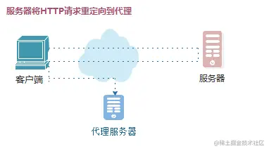 将某些Web服务器配置为向客户端发送一条HTTP重定向命令(响应码305),将客户端请求重定向到一个代理上去,收到重定向命令后,客户端会与代理服务器进行通信。