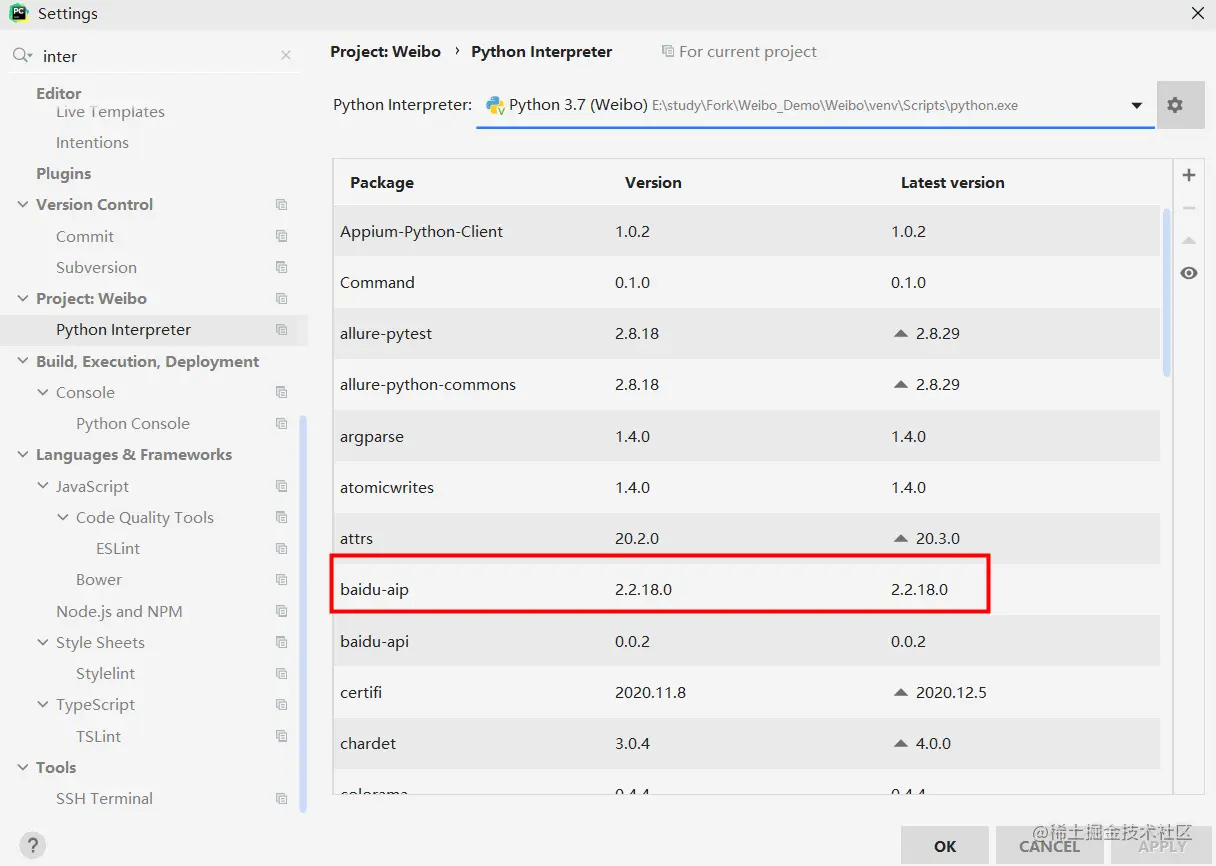 注意:在调用百度OCR识别需要在运行环境(工程)下安装baidu-aip,安装步骤如下: