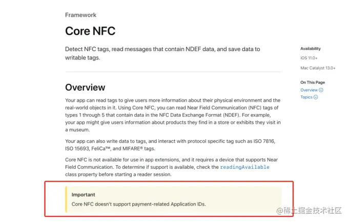 1.Apple NFC 不支持支付相关的业务场景,如扫描银行卡进行 NFC 支付功能。