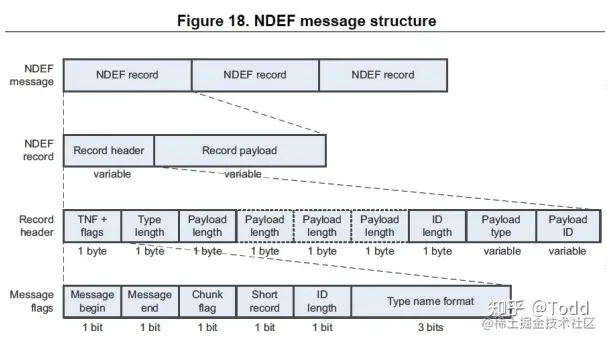 NDEF 格式是 NFC FROUM 发布的一个通用 NFC 数据传输格式,支持 UTF-8 编码、Unicode 编码,内容支持文本内容、URI 内容,甚至支持图片内容。