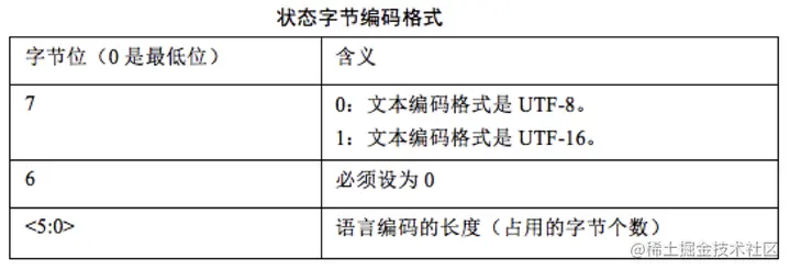 上面的是文本格式下,状态字节的具体编码格式。