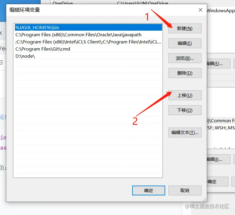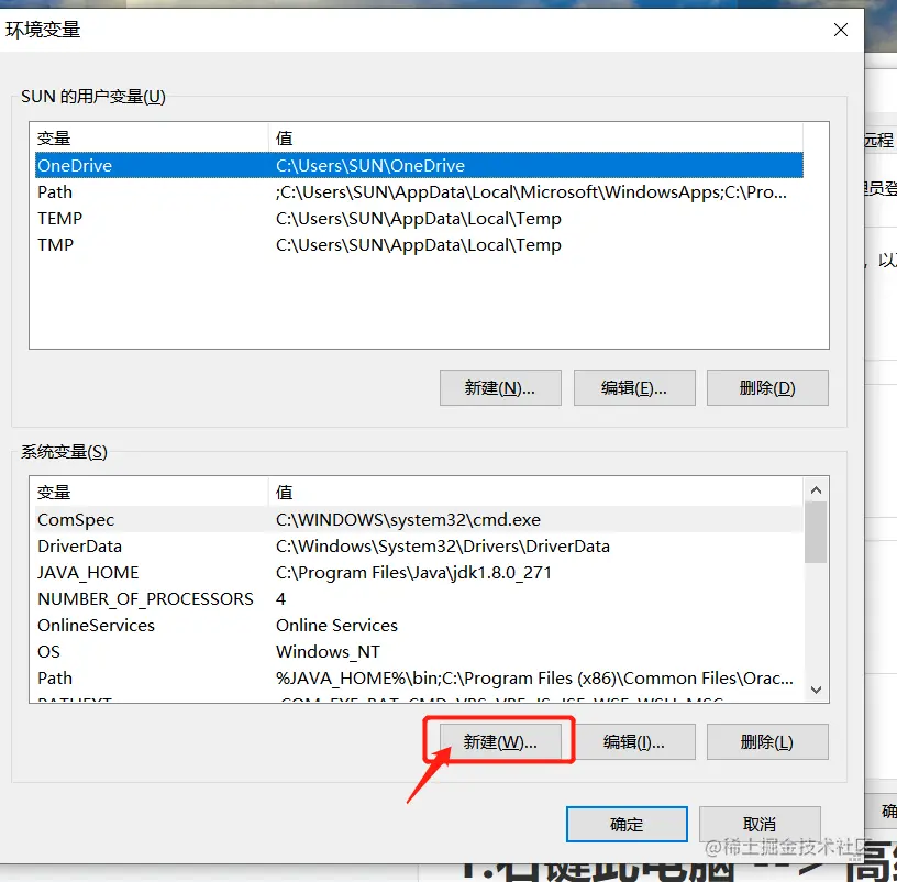 java环境变量配置 yezi 2021-01-05 921 阅读1分钟 1.右键此电脑 --> 高级系统属性 -->环境变量 输入变量名:JAVA_HOME 变量值:C:\Program Files\Java\jdk1.8.0_271(你安装的jdk路径) 2.找到path 双击 第一步 输入 %JAVA_HOME%\bin 第二步 点击上移 移到最上方 如图所示即可 最后记得确认保存 win+r 输入cmd 输入java 输入javac 显示如图所示就表示配置成功了,距离java大神又进了一步;