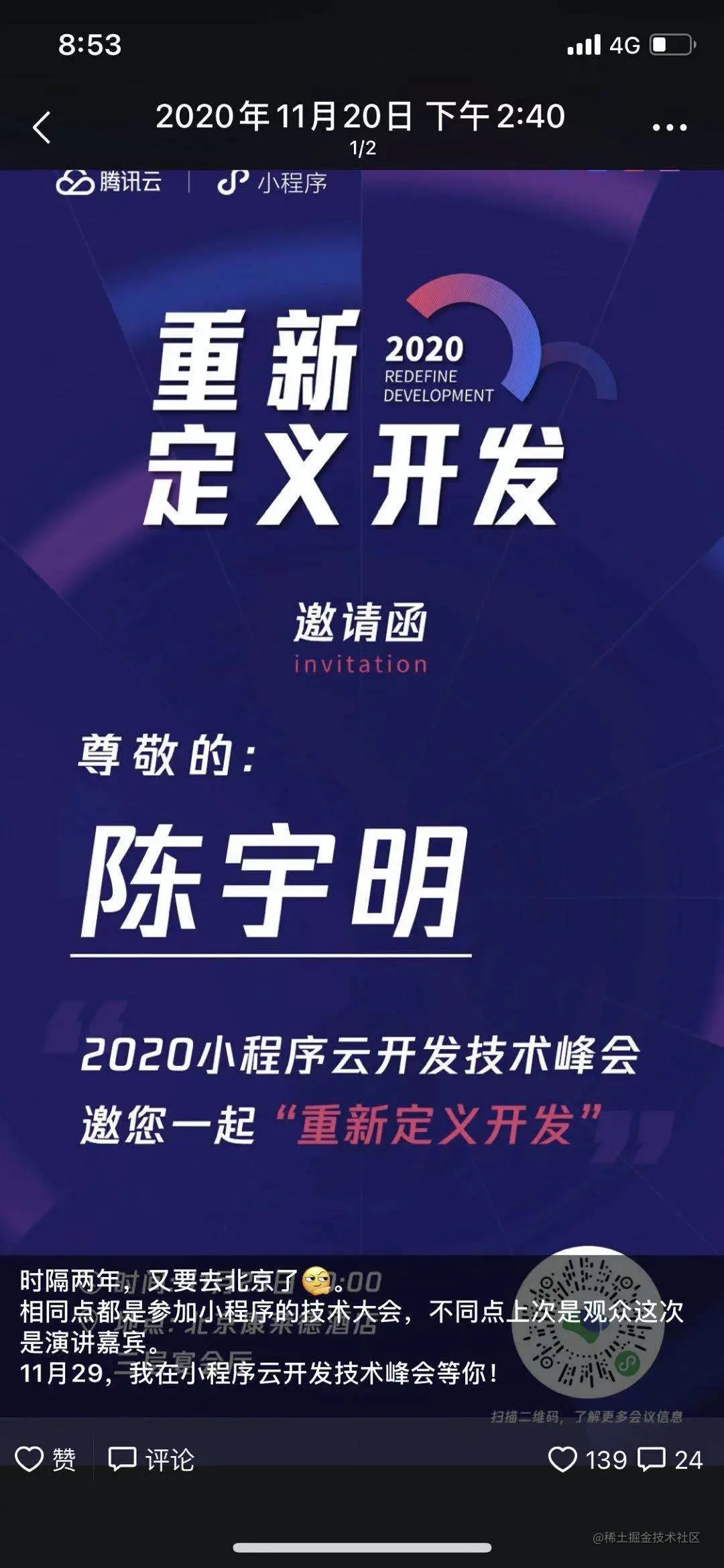 于是我毫不犹豫的转向了小程序,然后又通过掘金官方的小程序大会我又进一步的了解到了小程序云开发这个技术,那一年是我第一次去北京。