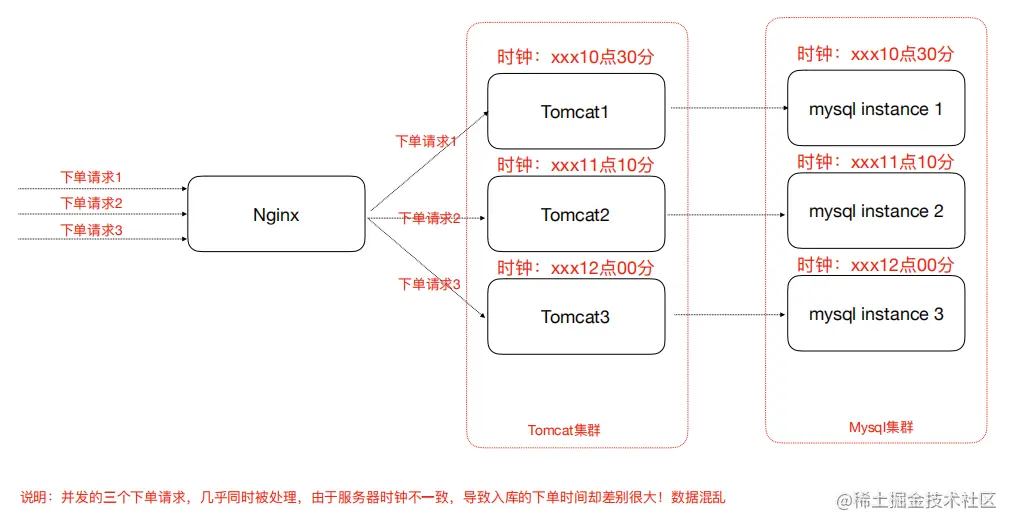 时钟此处指服务器时间,如果集群中各个服务器时钟不⼀致势必导致⼀系列问题