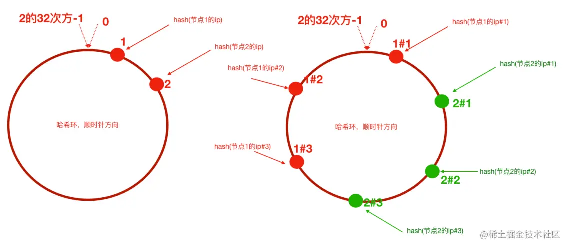 ⼀致性哈希算法在服务节点太少时,容易因为节点分部不均匀而造成数据倾斜问题。