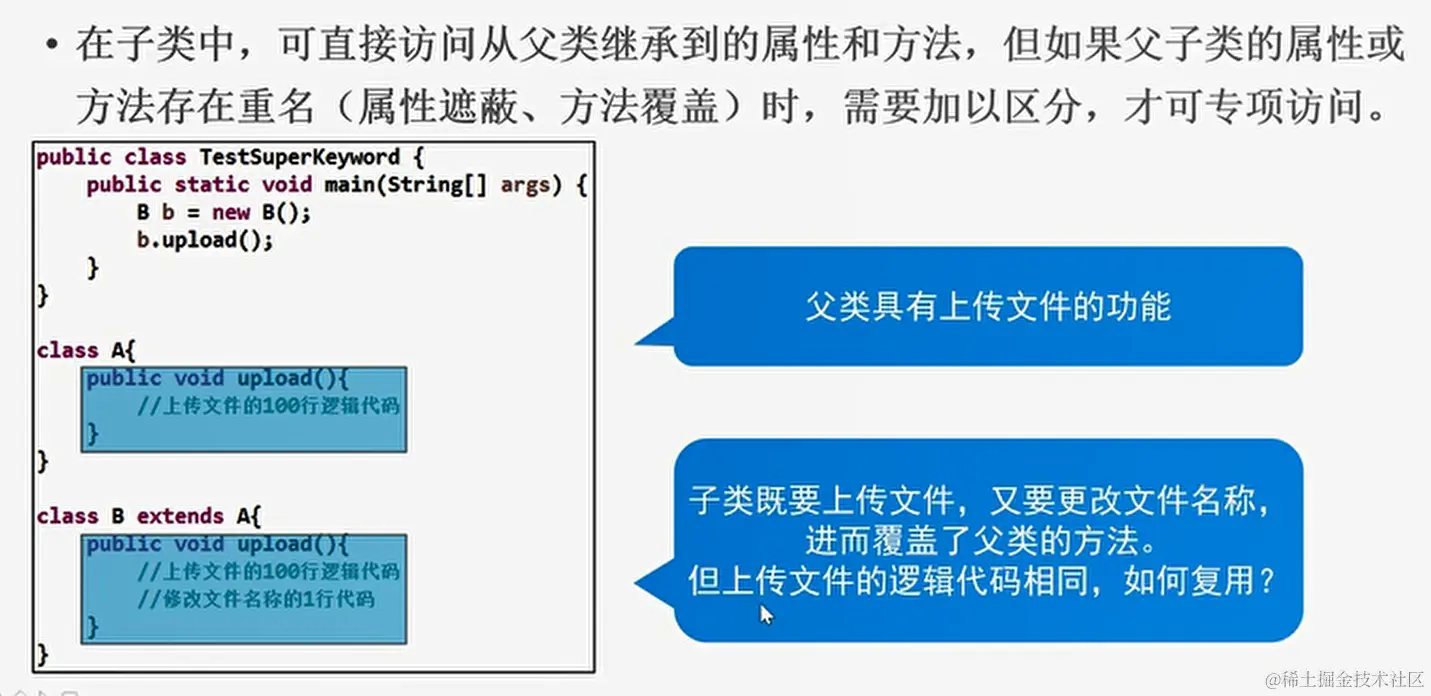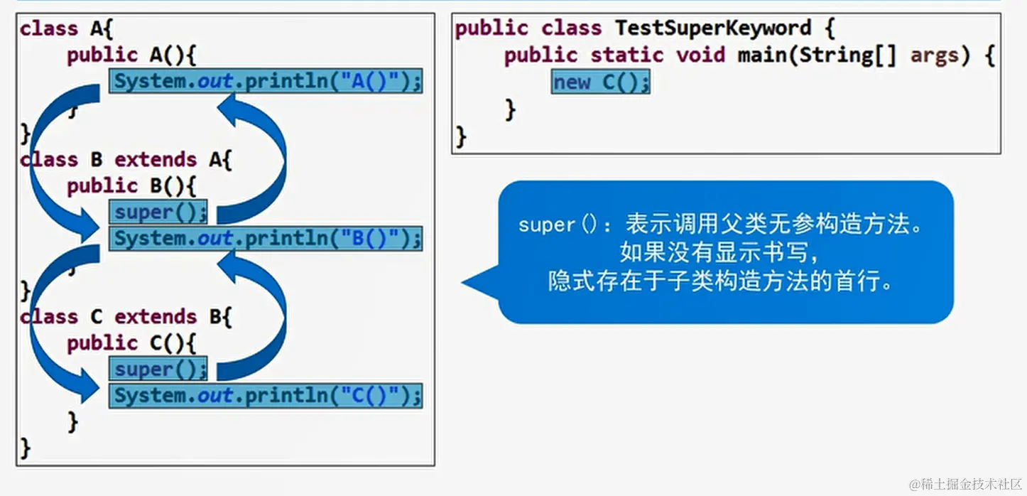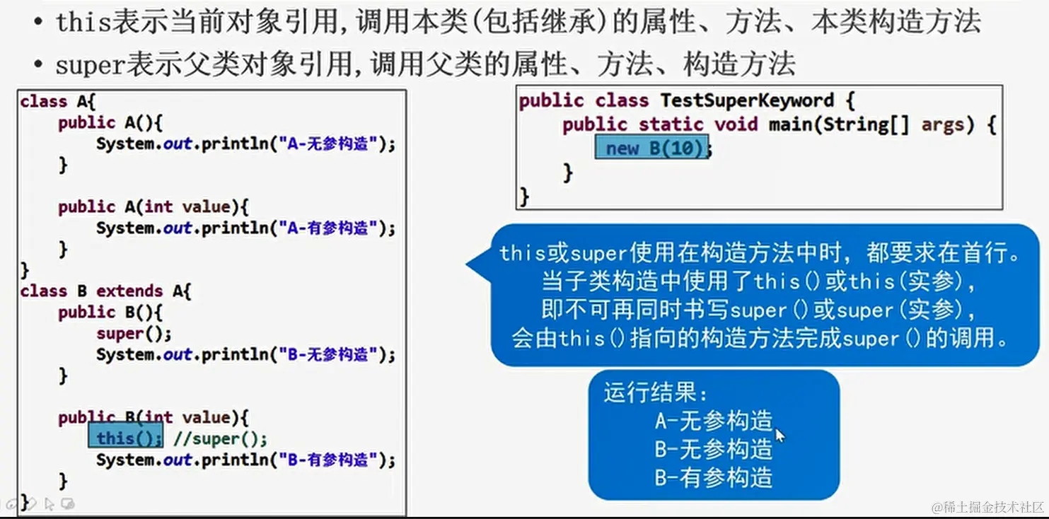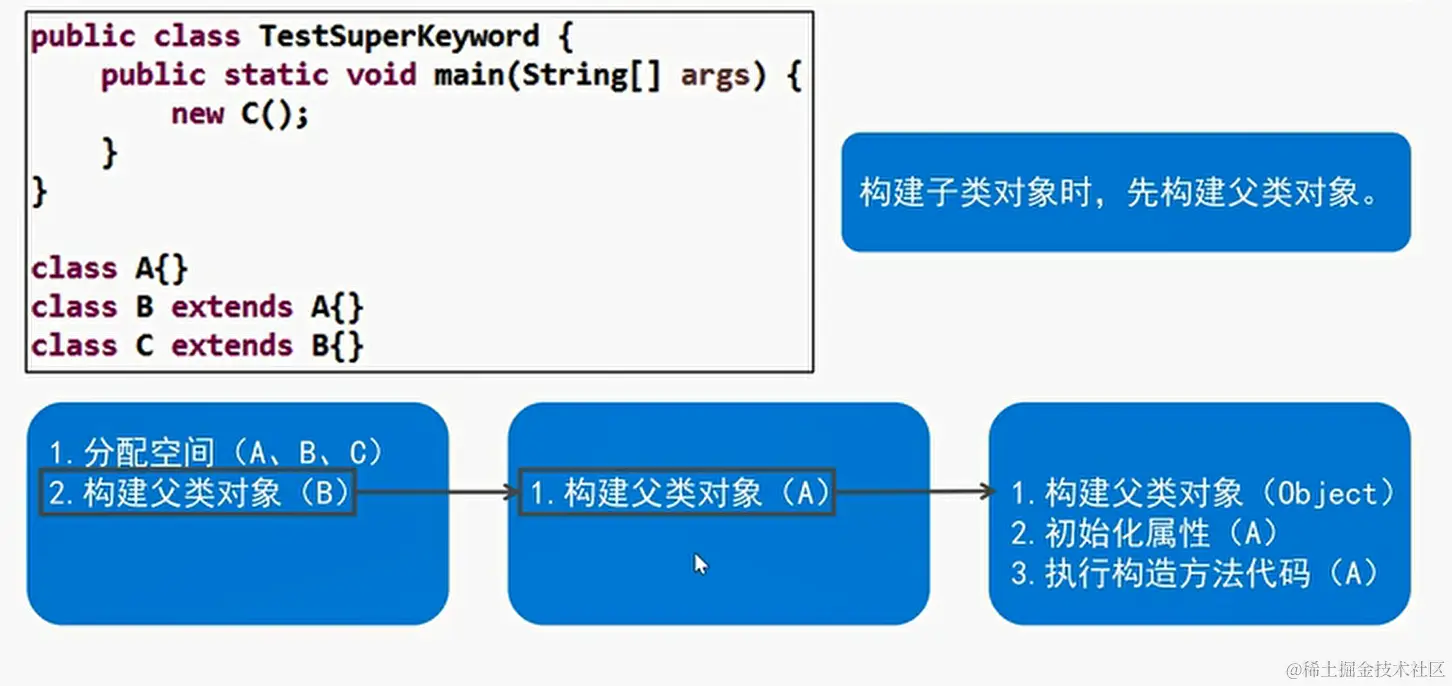 148 继承 ifubing 2021-01-05 50 阅读1分钟 生活中的继承 程序中的继承 父类的选择 选择一个最接近的作为父类 父类的抽象 演练 定义狗的类 狗的类继承动物类 继承 继承的特点 不可继承 访问修饰符 方法的覆盖 super关键字 super访问方法 super访问属性 继承中的对象创建 继承后的对象构建过程 super调用父类的构造方法 super调用父类的带参构造方法 this与super