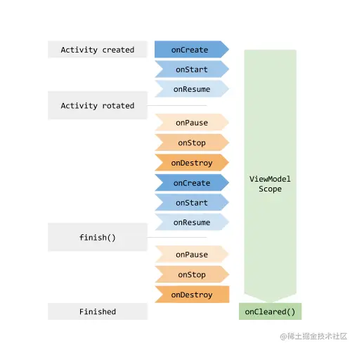 ViewModel的生命周期贯穿于Activity整个生命周期,只有Activity销毁时,ViewModel才会销毁。