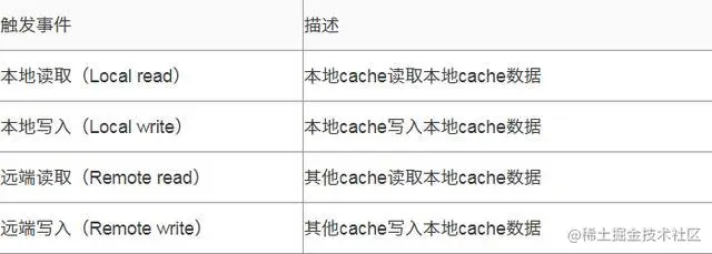 注意:本地的事件触发 本地cache和触发cache为相同。