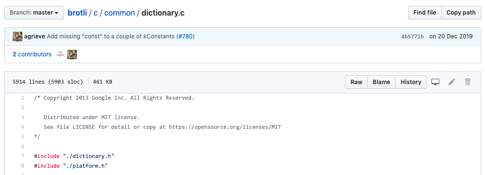 我在里面随便找个一个使用MIT协议的软件:brotli