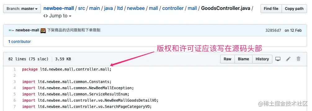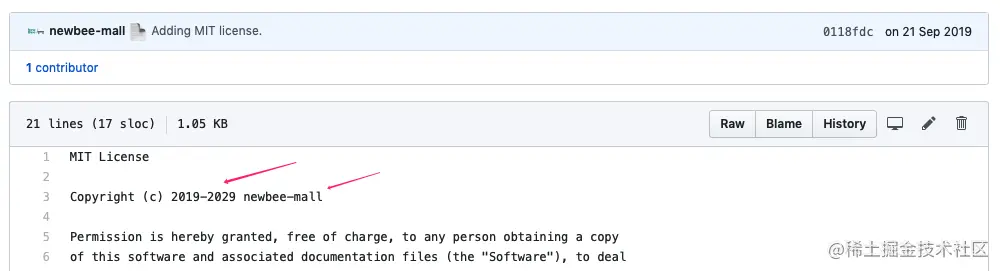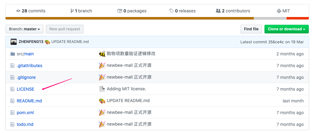我专门去“新蜂”的github仓库看了一眼,没错,作者在一级目录下放了LICENSE文件。