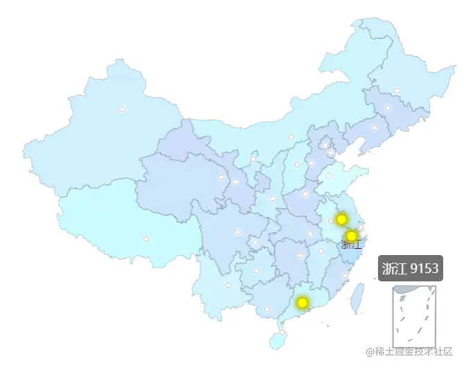 场景需要划入显示当前城市的值,和散点的值,当前城市排名前3名