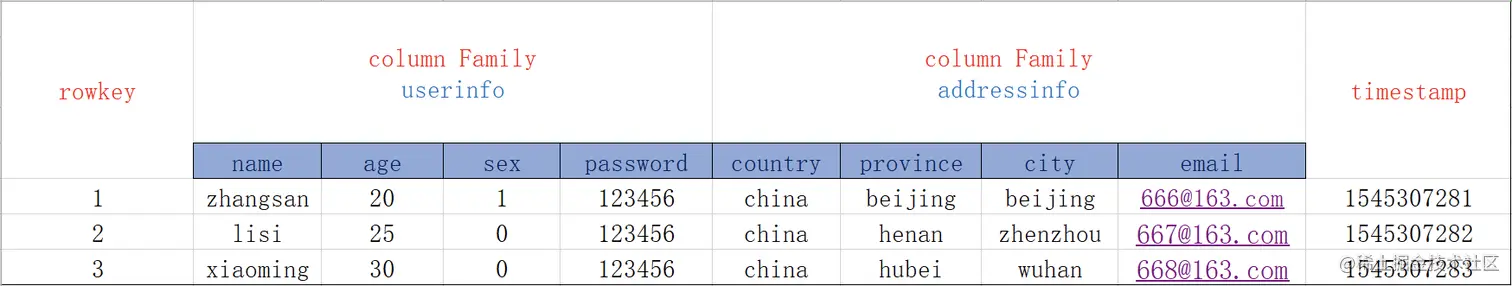 唯一性:rowKey必须具备明显的区别性。
