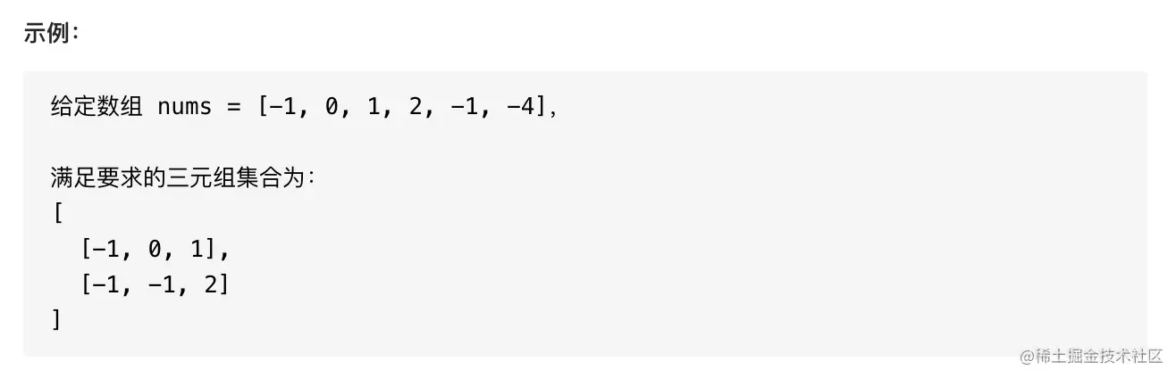 给你一个包含 n 个整数的数组 nums,判断 nums 中是否存在三个元素 a,b,c ,使得 a + b + c = 0 ?请你找出所有满足条件且不重复的三元组。
