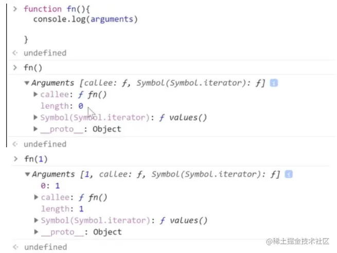 arguments: 包含所有参数的伪数组