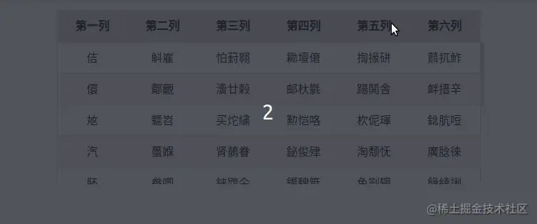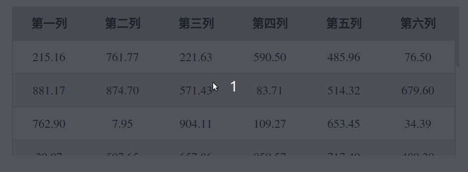 给table中thead里的th添加position:sticky样式,也需要设置top,left,right,bottom中的一种一个;表头的背景色在滚动过程中是透明的,所以需要设置背景色.