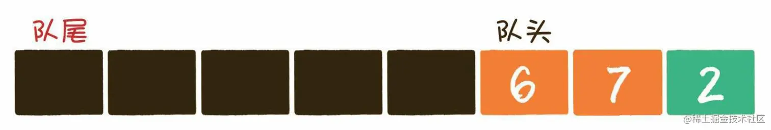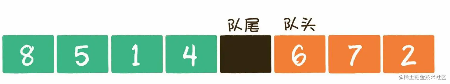(队尾下标+1)%数组长度 = 队头下标时,代表此队列真的已经满了。 需要注意的是,队尾指针指向的位置永远空出1位,所以队列最大容量比数组长度小1。