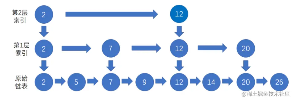 (3). 最底层的链表包含所有元素。