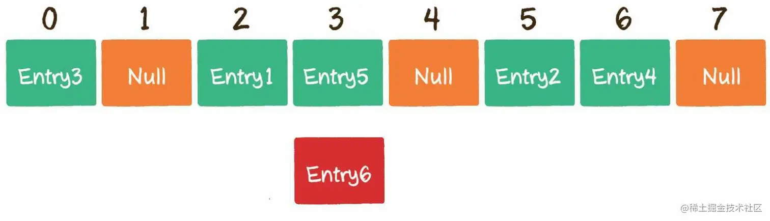 一旦发生了冲突,就去寻找下一个空的散列地址,只要散列表足够大,空的散列地址总能找到,并将记录存入。