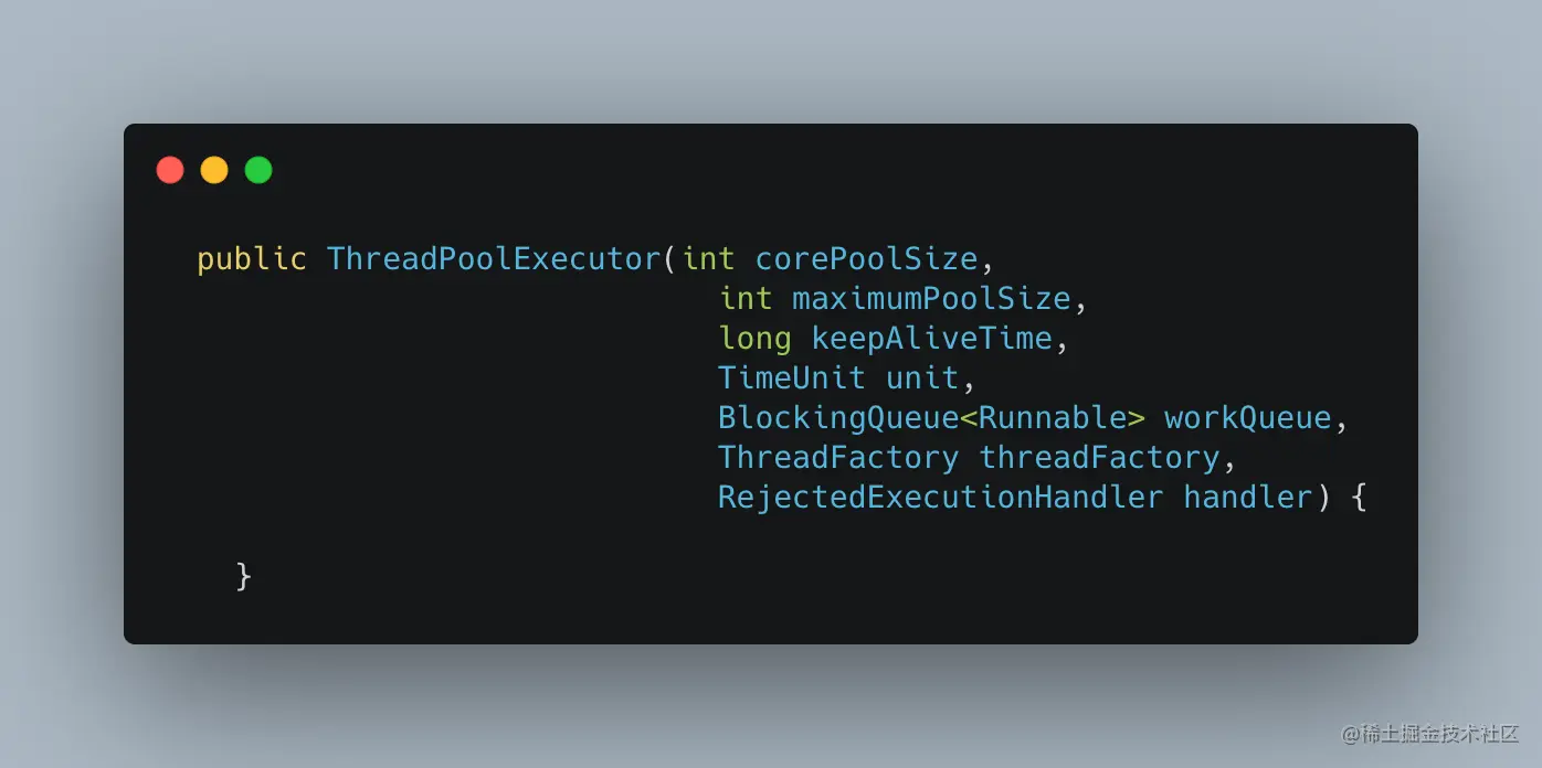 我们通常使用ThreadPoolExecutor这个类实现线程池,它的构造函数如下图,通过配置不同的参数,可以构建出行为差异巨大的线程池