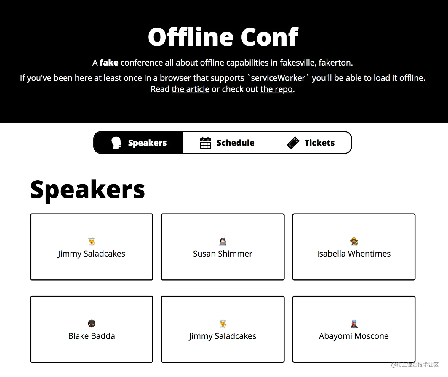 不久之前, Nicolas Bevacqua 写了一篇很精彩的文章《用 ServiceWorker 搭建离线网站小应用》。我和他一起实现了这个想法。Nicolas 做了所有的工作,而我仅仅提出了我们会做一个离线应用这一想法(并设计了一个简陋的小网站)。我不想要一个加载很多资源用很多 API 的大型网站,当然也不会简单到只用 HTML。