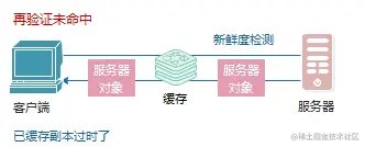 缓存对缓存的副本进行再验证时,会向原始服务器发送一个小的再认证请求。如果内容没有变化,服务器返回304 Not Modified。这种认证称为再验证命中(revalidate hit)或缓慢命中(slow hit)