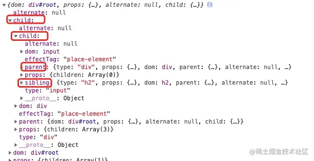 从上面打印出的fiber也可以看出,performUnitOfWork函数中下面这段代码就是这个意思。