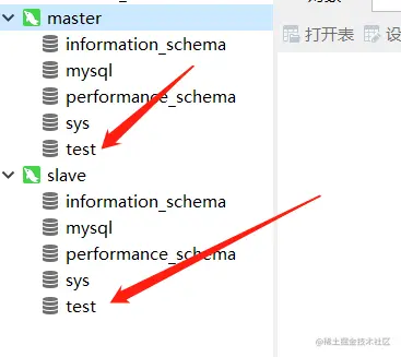 在master创建数据库test,同时刷新slave。当看到slave库出现test数据库时说明搭建成功