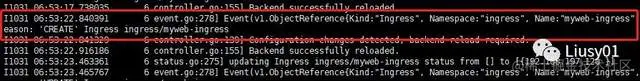 从上图可以看到,当ingress创建之后,ingress-controller会自动去加载,然后生成对应的nginx的conf文件。