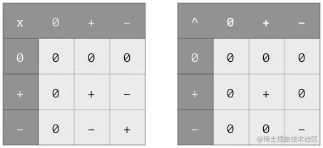组合变型有两种数学运算:Transform 和最大下确界(greatest lower bound, GLB )。Transform 用于类型组合,而 GLB 用于所有的聚合体:结构体、元组、枚举以及联合体。让我们分别用 0、+、和 - 来表示不变,协变和逆变。然后 Transform(X)和 GLB(^)可以用下面两张表来表示: