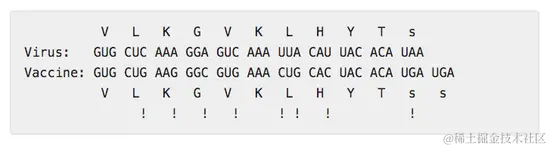 怎么回事呢?我们知道,在生物学中,三个RNA字符组成一个密码子。每个密码子都对特定的氨基酸进行编码。而疫苗中的信号肽与病毒本身的氨基酸完全相同。