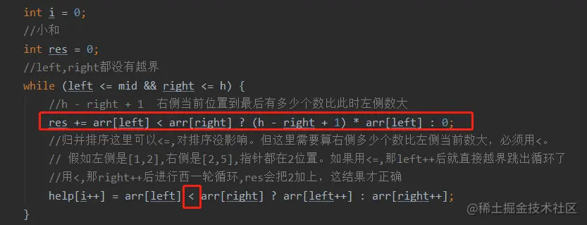 help[i++] = arr[left] > arr[right] ? arr[right++] : arr[left++];