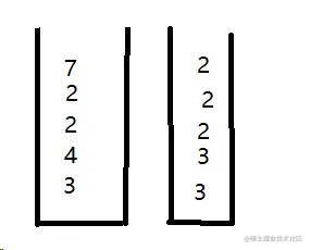 - 实现一个特殊的栈,在基本功能的基础上,再实现返回栈中最小元素的功能 用两个栈,一个存数据,一个存当前最小值。输入数据:3 4 2 2 7 。左侧数据栈右侧最小值栈