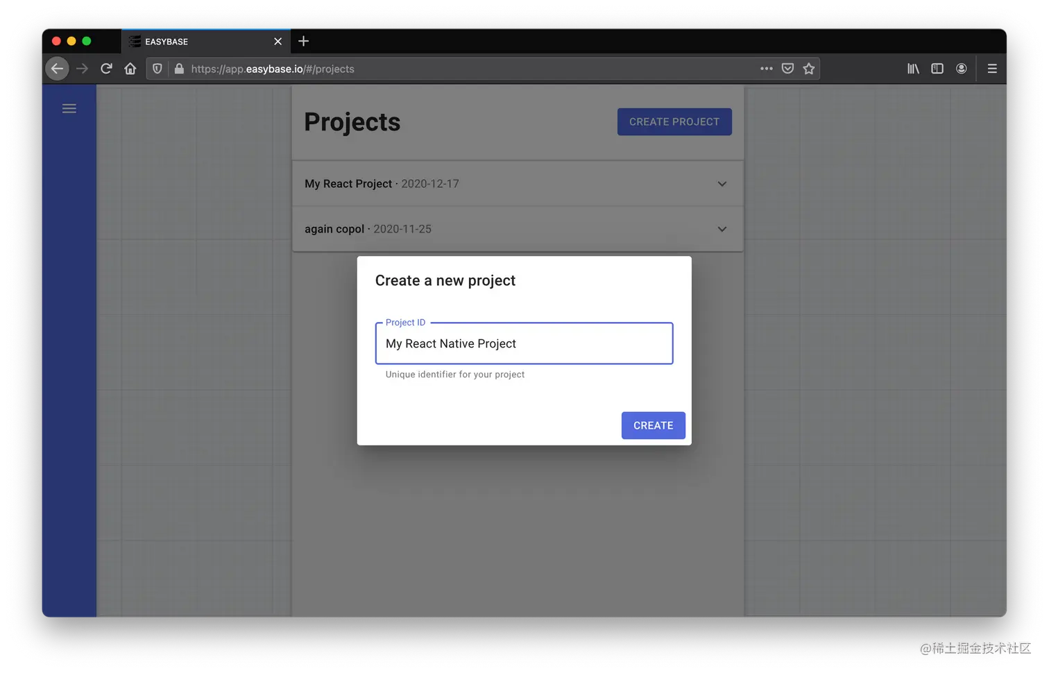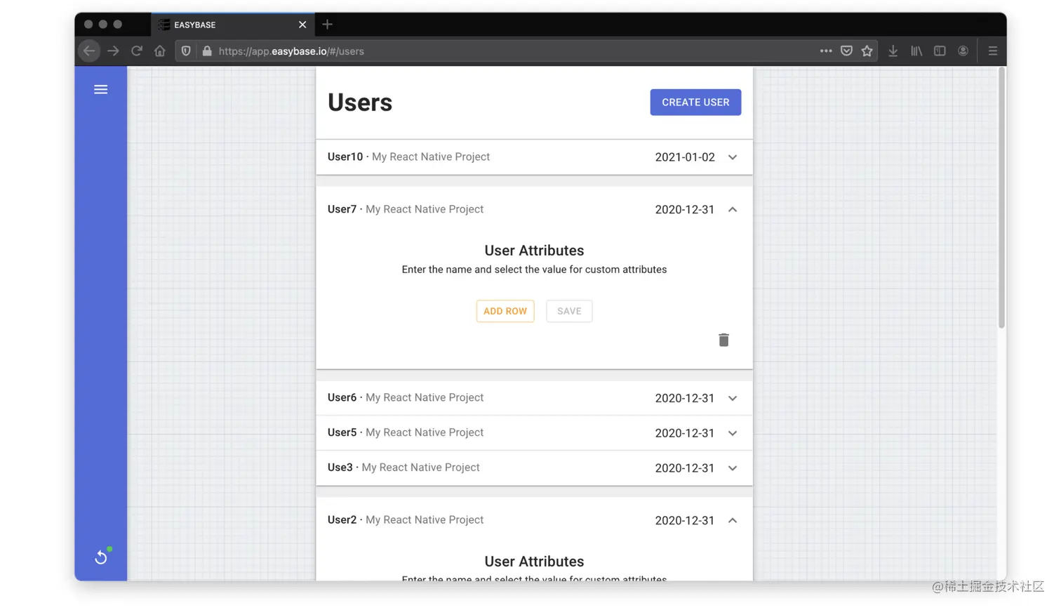 开发人员可以利用该服务的项目管理界面来轻松有效地扩展他们的应用程序。我们将能够使用这个界面管理我们项目的用户。该服务的网络应用程序(截图如下)非常出色地集成了Easy base反应npm包。