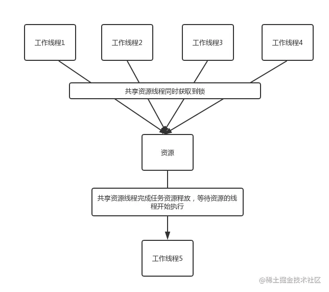 - Share:共享,多个线程可以同时执行,如Semaphore、CountDownLatch、ReadWriteLock,CyclicBarrier