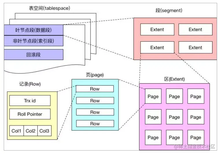 InnoDB存储引擎逻辑存储结构可分为五级:表空间、段、区、页、行。